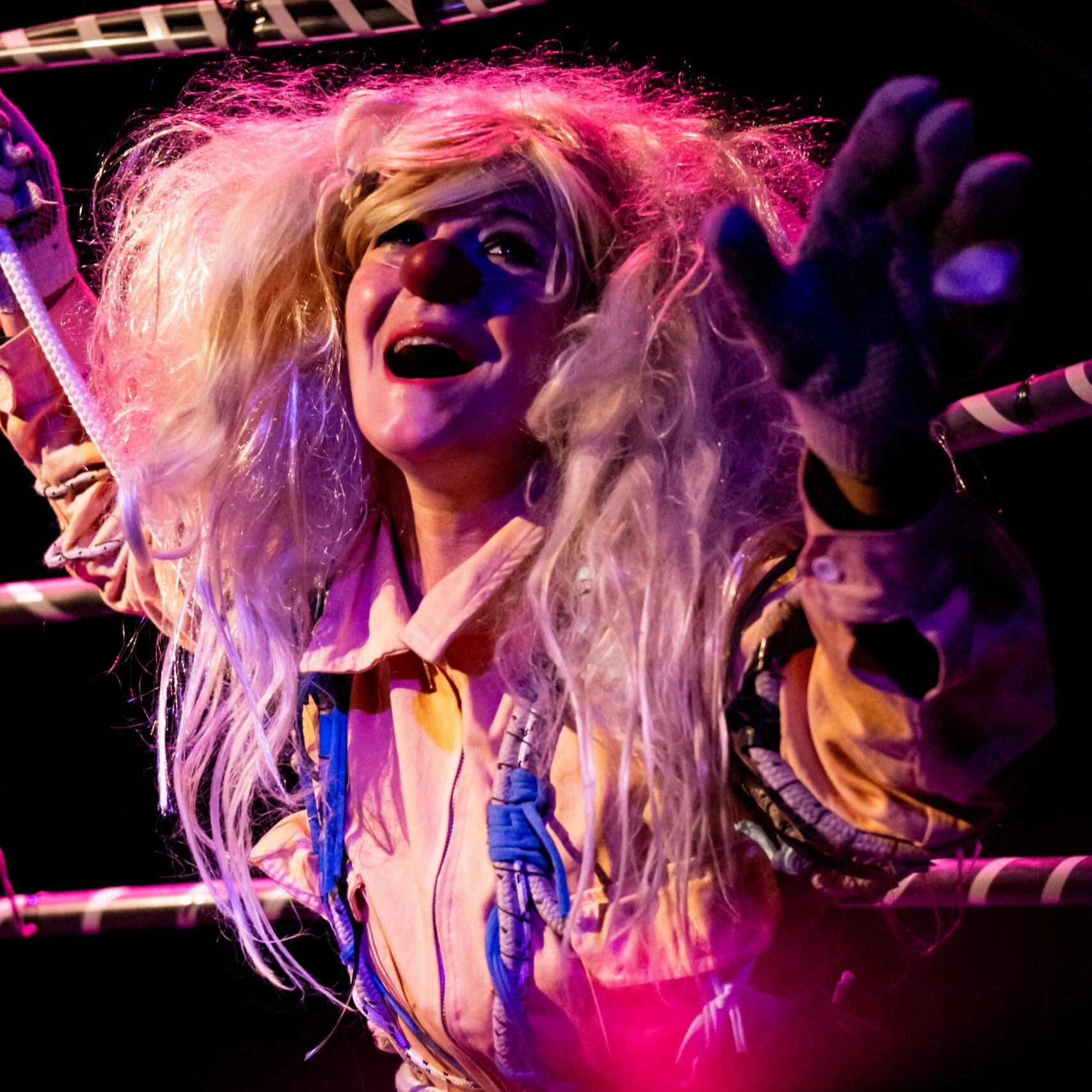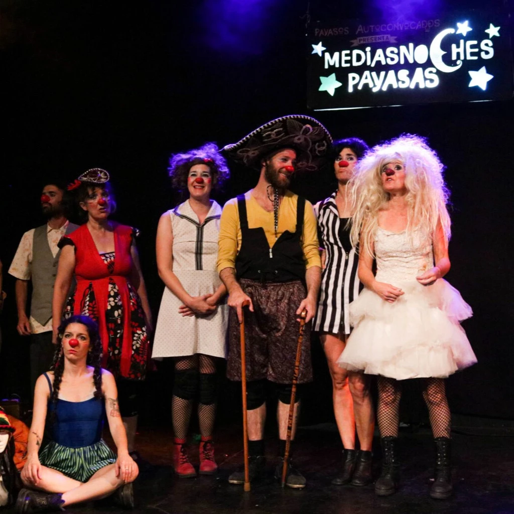 Espectáculo que combina clown e improvisación, 12 payasos y payasas en escena crean historias distintas cada noche, acompañados por una orquesta payasa.