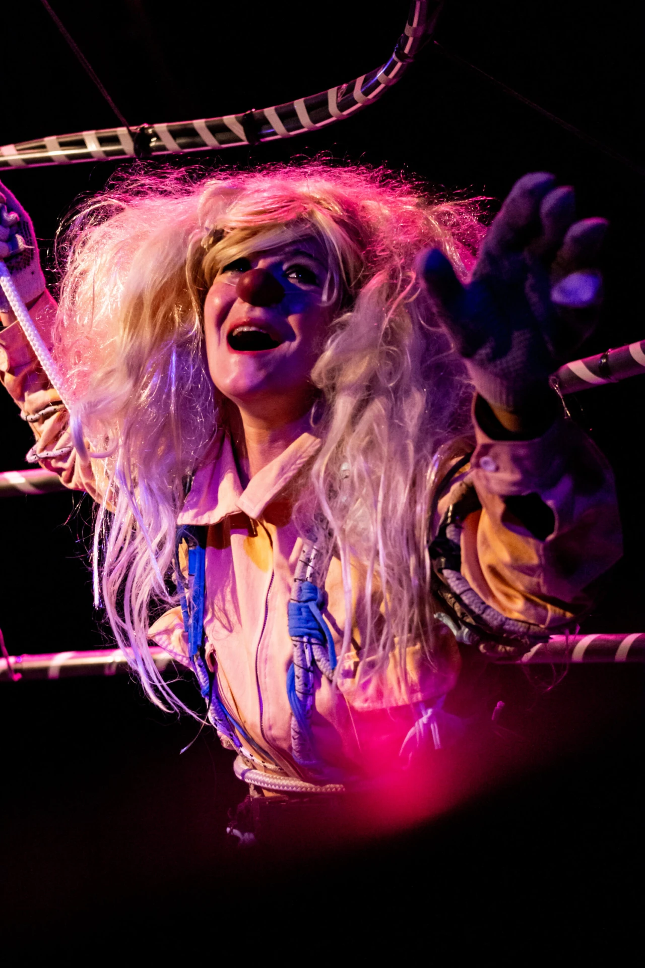 Las voces de la clásica obra de Fernando de Rojas atraviesan a Lita que está en permanente riesgo de muerte, con sus manos debe sostener una escenografía que se le ha caído encima. Todo pende de un hilo y ya no le quedan fuerzas, aun así reirá, llorará y gozará hasta el final.